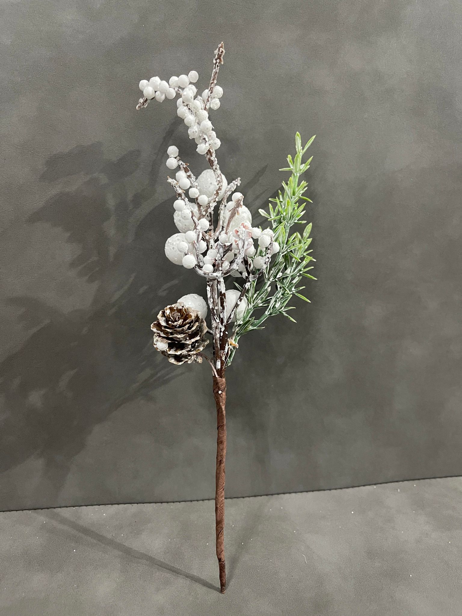 Crenguta decorativa alba cu con.