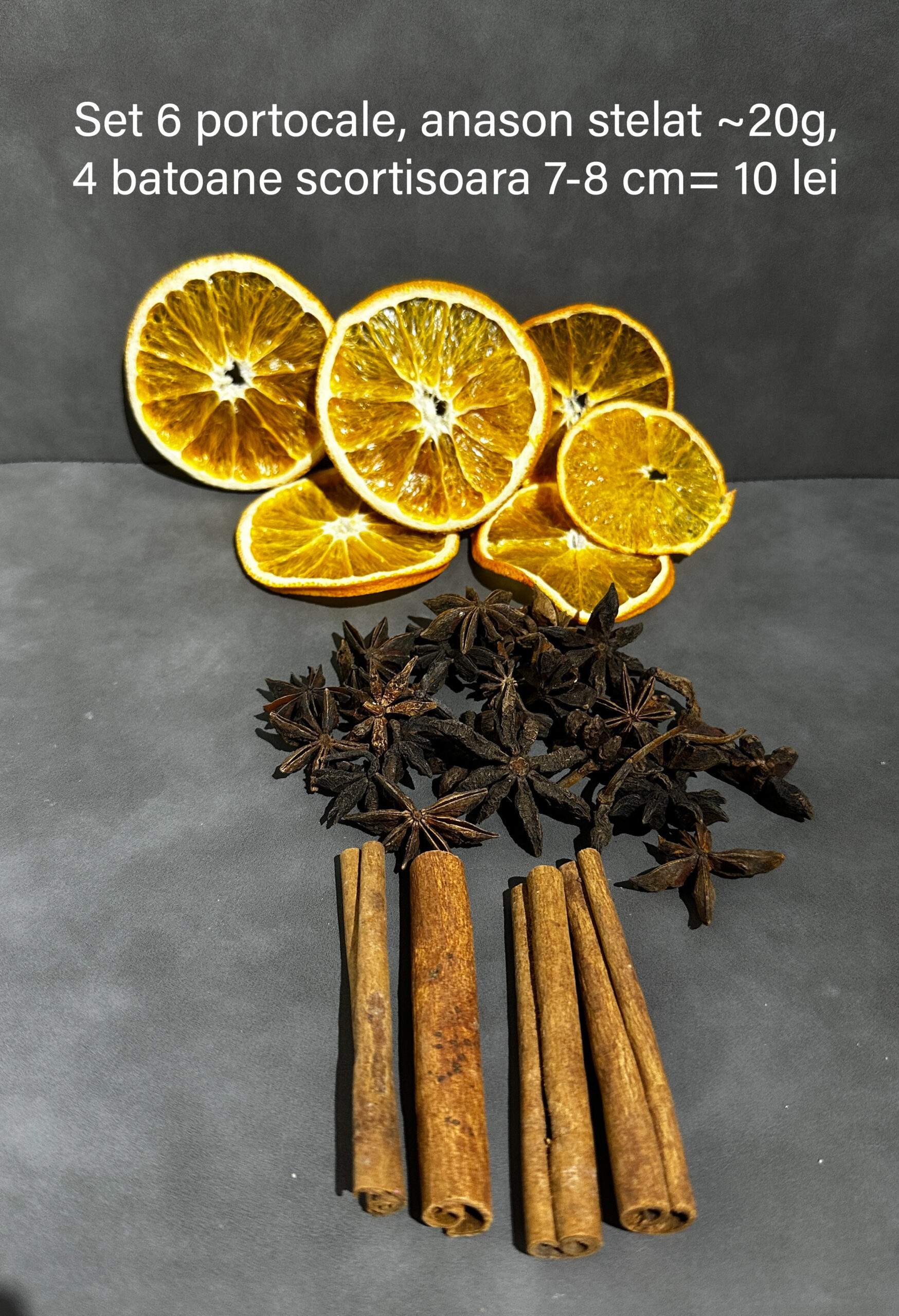 Set 6 felii de portocala deshidratate~20g, 4 batoane scortisoara si 20 g anason.